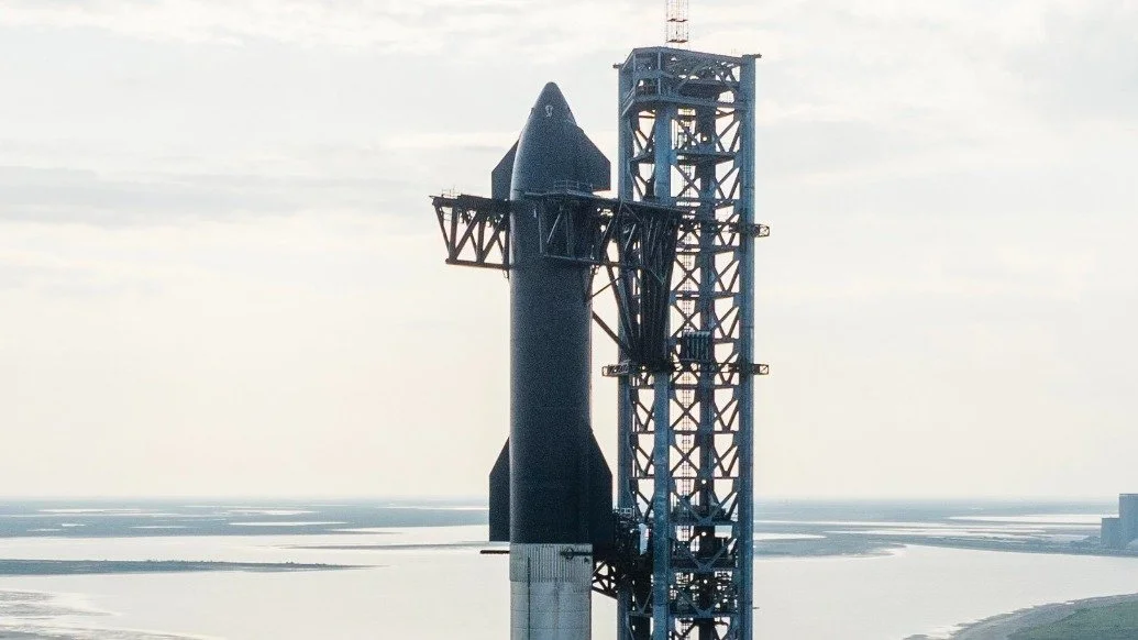 “星际飞船”由一个巨大的第一级助推器“超级重型”和一个165英尺高(50米)的上层“星际飞船(Starship)”组成,这两个助推器的设计都是可完全重复使用。此前有视频发布可以看出Starbase的巨型发射塔“Mechazilla”使用其“筷子”臂将24号飞船提升到Booster 7上,Booster 7已经位于Starbase的轨道发射架上。